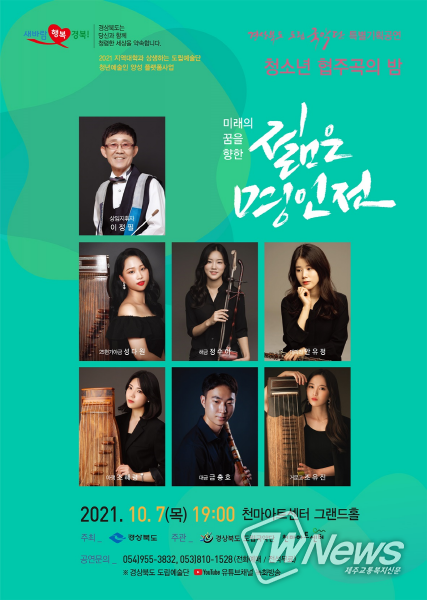 [제주교통복지신문 김지홍 기자] 경상북도는 7일 저녁 7시 천마아트센터에서‘미래의 꿈을 향한 젊은 명인전’공연을 개최한다고 밝혔다.
