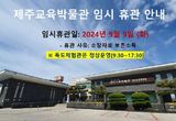 제주도교육청 제주교육박물관, 9월 3일 소장자료 보존 소독에 따른 임시 휴관