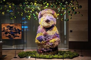 [TW포토] 제주 드림타워, 명물 된 키 3미터에 1만 송이 '꽃하르방'