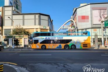[TW포토] 제주 칠성로 지나는 제주시티투어버스