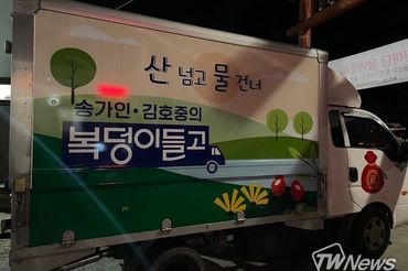 [TW포토] 제주 온 송가인·김호중 '복덩이들고' 만물 트럭