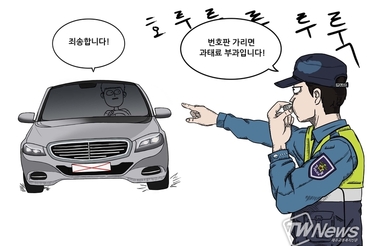 [제주만평] 자동차 번호판 가림 차량에 과태료 부과 주의