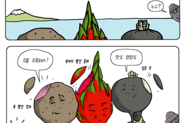 [TW만평] 제주의 색다른 녀석들…빨간 감자·붉은 과육 용과·검은 무