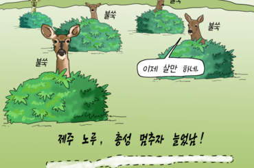 [TW만평] ‘한라산 상징’ 제주 노루, 총성 멈추자 다시 늘었다