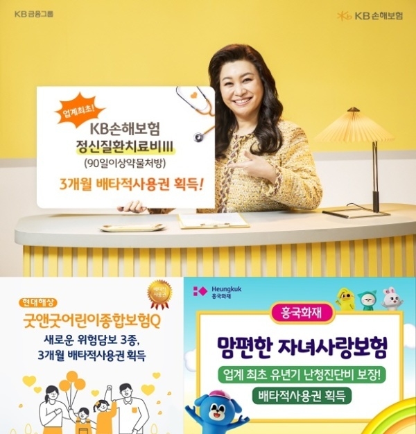 21일 보험업계에 따르면 현대해상 ‘(무)굿앤굿어린이종합보험Q’, KB손해보험 ‘KB금쪽같은 자녀보험’, 흥국화재 ‘무배당 맘편한 자녀사랑보험’, 하나손해보험 ‘하나 슬기로운 자녀생활보험’ 등이 올해 배타적 사용권을 획득했다.