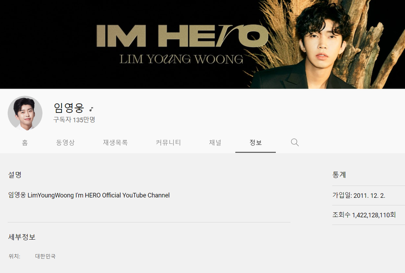 [제주교통복지신문 김현 기자] 가수 임영웅 공식 유튜브 채널 ‘임영웅’이 17일 기준 총 조회 수 14억 2000만 뷰를 넘어섰다.
