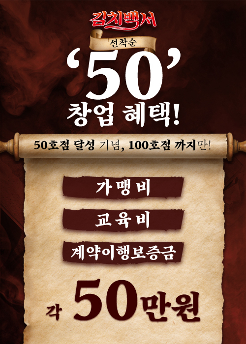 브랜드 관계자는 “김치백서는 론칭 초기부터 빠른 속도로 60호점을 넘어섰고 70호점 돌파를 앞두고 있다”며 “본사는 더 많은 가맹점주와 동반 성장하기 위해 ‘100호점 한정 창업 프로모션’을 진행한다”고 전했다.
