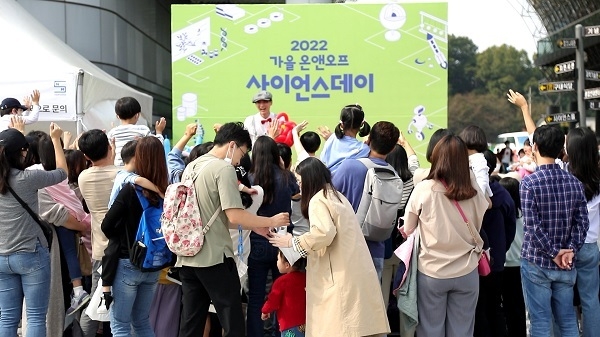 과학기술정보통신부 주최, 국립중앙과학관이 주관하며 교육부가 후원하는 '2022 가을 온앤오프 사이언스데이'는 매년 봄과 가을 전국 규모로 열리는 대표적인 우리나라의 과학문화 체험행사로 온라인에서 과학 체험 콘텐츠(52개), 과학강연(2회), 누구나 챌린지(1회), 우수콘텐츠 선정 대회, 이벤트(2회) 등과 오프라인에서 과학 체험 콘텐츠(토-22개/일-24개), 과학문화공연, ‘책에서 찾는 과학향기’대면 강연, 가족과학캠프, 에어 로켓 만들기(누구나챌린지), 탄소중립 캠페인 및 이벤트 등을 병행 개최하여 온 가족이 함께 과학을 즐겁게 체험할 수 있는 행사다.