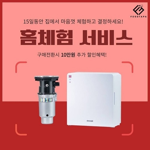 푸드타파에서 금번 진행하는 홈체험 서비스는 하루 100대에 한정하여 진행되며 서비스를 신청한고객은 푸드타파의 하이브리드 싱크대음식물처리기를 15일동안 무료체험해볼 수 있다고 업체 관계자는 설명했다.
