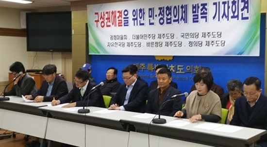 강정마을회를 비롯해 더불어민주당·자유한국당·국민의당·바른정당·정의당 제주도당은 이날 오후 제주도의회 도민의방에서 기자회견을 열고 협의체 출범 소식을 알리며, 국방부(해군)가 강정마을회 등을 상대로 제기한 구상금 청구소송을 원만히 해결해야 한다고 한 목소리로 말했다.