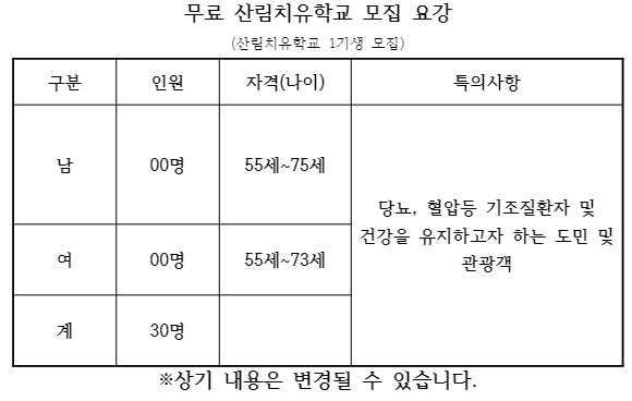 참가자들은 힐링 걷기 외에 제주청정 자연환경과 산림치유에 대한 교육, 명상 힐링요법 등에 대해서도 교육을 받을 수 있도록 프로그램이 마련돼 있다. 참가비는 없으며 신청자 전원 무료로 진행 된다.