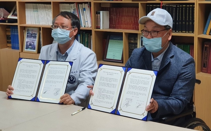한마음병원과 한국척수장애인협회 제주도협회(회장 현만수)은 업무협약을 맺고 사업추진을 위해 양 기관이 상호 협력하기로 했다.