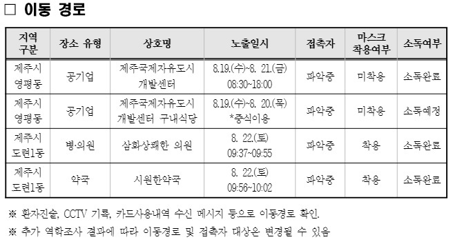 도 역학조사 결과, A씨는 제주국제자유도시개발센터(JDC) 직원으로, 지난 19일부터 21일까지 제주시 아라동 소재 JDC에서 근무한 것으로 확인됐다.