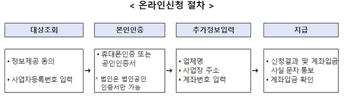24일부터 전용 온라인 사이트*에서 별도 증빙서류 없이 사업자번호와 계좌정보 등의 추가 정보만 입력하면 된다.