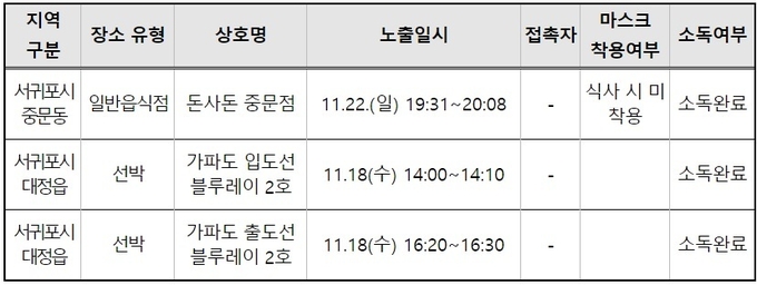 제주 서귀포시 천제연로에 위치한 돈사돈 중문점과 가파도 입·출도 도항선에 코로나19 확진자가 거쳐간 것으로 확인됐다.