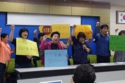 현재 제주시 버스터미널로 이용되고 있는 제주종합터미널의 상가 임차인들이 제주도정의 터미널 이전 계획과 관련해 졸지에 일방적으로 내몰림을 당한다며 대책을 요구하고 나섰다. 이 상가 임차인과 상가 종사자 25명은 12일 오전 제주도의회 도민의방에서 기자회견을 열고 “제주도가 대대적인 교통개편을 하는 것은 도민의 한 사람으로써 환영하는 바”라면서도 “터미널 상가 임차인들은 답답함을 호소할 수밖에 없는 현실”이라고 입장을 밝혔다. 제주도정이 오는 8월에 시행할 대중교통체계 개편과 관련, 현 터미널의 기능을 대폭 축소하고, 대신 제주공항 인근에 환승센터를 건설하려는 계획을 최근에 들어서야 알았고, 이는 자신들에게는 “갈 길 가라는 식의 내몰림”이라는 항의다. 임차인들은 그동안 설명 한번 들은 바 없고, 지난 1일 제주도정이 대중교통체계 개편과 관련된 공고안을 게시한 것을 본 게 전부이며, 이에 지난 5일 의견서를 제출했고, 이어 8일에는 도청 실무자와 간담회를 열었다고 밝혔다. 하지만 이 자리에서 종합터미널의 매표기능이 없어진다는 설명만 들었고, 이후 아무런 답변이 없어, 수정을 요구하기 위해 기자회견을 열게 됐다는 것이다. 이들은 종합터미널이 운영되기 시작