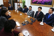 새누리당 분당이 확실시된 가운데 22일 제주도에서는 원희룡 제주지사와 제주도의회 새누리당 소속 도의원들이 대책을 모색하기 위해 한자리에 모였다. 원 지사와 새누리당 소속 도의원 12명은 이날 오전 신관홍 의장실에 모여 ‘제주 새누리당 긴급연석회의’를 열었다. 참석자는 원 지사와 신관홍 의장, 강연호 원내대표, 고정식, 고충홍, 구성지, 김동욱, 손유원, 유진의, 이경용, 이선화, 하민철, 홍경희 의원 등이었다. 이날 회의는 모두발언만 공개된 뒤 비공개로 진행됐다. 원 지사는 모두발언을 통해 “건강한 보수로 새로 태어나기 위해서는 새누리당 밖에서 건강한 보수를 세우기 위한 운동이 대대적으로 일어나야 하는 것 아닌가하는 흐름이 태풍의 눈처럼 만들어지고 있다”고 말해 사실상 동반 탈당을 권유하는 모양새였다. 하지만 도의원들의 입장은 애매모호했다. 신관홍 의장은 “지금의 상황에서 판단은 각자가 해야 할 것”이라며 “앞으로 중앙당의 흐름을 예의주시하고, 그에 따른 각자의 생각을 갖고 하나로 모아갈 때 좋은 도의원이 되지 않을까 생각한다”고 말했다. 아직 상황을 지켜볼 수밖에 없고, 당장 나름의 방책은 없이 일단 ‘눈치보기’를 할 수 밖에 없다는 실토에 다름