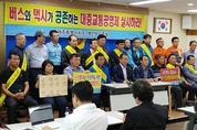 관련 업계의 의견 수렴과 이해조정 과정이 한참 부족한 제주도정의 ‘대중교통체계 개편’이 곳곳에서 파열음을 내고 있다. 제주도 개인택시운송사업조합은 23일 오전 제주도의회 도민의방에서 기자회견을 열고 “일방적인 대중교통체계 개편은 개인택시사업자를 고사시키는 처사”라고 강하게 반발했다. 택시조합은 “제주공항 급행노선 출발과 버스노선 확대는 택시운송 종사자들에게 큰 손실을 입힐 것”이라며 “버스준공영제는 다른 지역에서도 논란이 되는 제도”라고 주장했다. 또 “버스요금 1200원 통일은 열악한 재정수준을 고려하지 않은 전형적인 포퓰리즘 정책”이라며 “향후 5년간 6300억원 이상의 예산이 들어간다”고 문제 삼았다. “대중교통체계 개편으로 세금 등이 포함되면서 실질적인 버스요금은 인상된 것임에도 명목상 버스요금은 낮춤으로써 도민들에게 왜곡된 가격신호를 주게된다”는 문제 제기다. 또 이렇게 ‘왜곡된 가격체계’는 “버스와 택시 간 공정한 경쟁을 저해하면서 부당하게 개인택시조합원이 부담해야 할 손해가 불 보듯 뻔하다”고 반발했다. 그리고 택시조합은 택시의 수송분담률이 55% 이상을 차지하는 데도 불구하고 제주도정은 개인택시조합원 3913명의 의견은 아예 반영하지