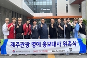 [제주교통복지신문 김현 기자] 그룹 블랭키(BLANK2Y)가 데뷔 전 제주관광 명예 홍보대사로 활동한다. 13일 소속사 키스톤엔터테인먼트는 “당사 아티스트 블랭키가 제주특별자치도관광협회 명예 홍보대사에 위촉됐다”라고 밝혔다. 이어 “지난 12일 오전 제주관광협회 회의실에서 제주도관광협회 제주관광 명예 홍보대사 위촉장을 전달받았다”라고 덧붙였다. 블랭키는 향후 2년간 제주도의 위상을 높이는 다양한 홍보 활동을 이어나갈 예정이다. 부동석 회장은 “제주특별자치도관광협회 제주관광 명예 홍보대사로 위촉된 것을 축하드린다”며 “코로나 팬데믹 이후 제주관광 활성화와 제주도의 글로벌 브랜드 가치를 높이는데 꾸준히 힘써달라”라고 당부했다. 이에 블랭키는 “유네스코 자연경관분야 3관왕을 달성한 아름다운 섬 제주도를 전 세계에 알리는데 부끄럽지 않도록, 또 가치를 높이기 위해 열심히 활동하겠다”라고 위촉 소감을 전했다. 오는 24일 데뷔를 앞두고 뜻깊은 자리에 오른 블랭키가 앞으로 또 어떤 유의미한 행보를 보여줄지 귀추가 주목된다. 블랭키는 루이, DK, 동혁, 시우, 영빈, 마이키, U, 성준, 소담으로 구성된 9인조 보이그룹이다. 앞서 블랭키는 각종 패션쇼 모델 및 셀럽 참