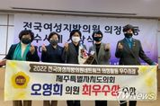 [제주교통복지신문 서유주 기자] 제주특별자치도의회 오영희 의원(국민의 힘, 비례대표)이 “2020-2021 전국여성지방의원네트워크 의정활동 우수사례 공모에서 최우수상 수상의 영예를 안았다”고 밝혔다. 전국여성지방의원네트워크는 2010년부터 전국여성지방의원 의정활동 우수사례에 대해 시상하고 있으며, 여성정치참여에 대한 긍정적 여론 형성과 우수 의정활동 사례 공유⋅전파를 위해 상하반기로 나누어 의정활동 우수사례를 공모하고 있다. 이번 의정활동 우수사례는 전국 248개의 지방의회 840여명의 여성지방의원 대상으로 공모하여 전국성평등의회지원센터 부센터장 김명숙, 이화여자대학교 정책과학대학원 초빙교수 박진경, 명지대학교 행정학과 교수 임승빈, 중앙대학교 정치국제학과 교수 장혜영 등 전문가 심사위원회 평가를 거쳐 선정되었다. 시상은 2022년 3월 16일 국회 의원회관 제3세미나실에서 진행되었다. 오영희 의원은 2018년 7월 제주특별자치도의회 제11대 도의원으로 입성하여 전반기 보건복지안전위원회, 후반기 문화관광체육위원회에서 활동하고 있으며, 이번 전국여성지방의원네트워크 의정활동 우수사례 내용으로는 대부분 후반기 문화관광체육위원회 의정활동 내용이 포