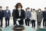 [제주교통복지신문 서유주 기자] 나경원 국민의힘 당대표 후보가 5일 오전 제주4‧3평화공원을 방문해 4‧3희생자들을 추모했다. 이날 양조훈 4‧3평화재단 이사장의 안내로 진행된 참배에는 장성철 국민의힘 제주도당 위원장, 4‧3희생자유족회 오임종 회장‧김창범 상임부회장 등이 동행했다. 위령제단 참배를 마친 나경원 후보는 위패봉안실을 둘러보고 방명록에 “4‧3희생자의 아픔을 위로합니다. 진정한 화해와 상생으로 미래로 가는 길, 함께 하겠습니다”라고 남겼다. 제주교통복지신문, TW News