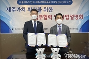 [제주교통복지신문 서유주 기자] 제주국제자유도시개발센터(이사장 문대림, JDC)와 서울제주도민회(회장 강한일)가 수도권 지역 제주 가치 확산과 향토발전을 위한 행사 및 사회공헌 활동 협력을 위해 26일 업무협약을 체결하고 JDC 사업설명회를 가졌다. 이날 행사에는 양 기관에서 문대림 JDC 이사장, 강한일 도민회장, 이일현 수석부회장, 이승석 상근부회장을 비롯한 지역회장단 등이 참석했다. 이번 협약은 ▲수도권 지역에서 제주가치 확산을 위한 공동사업 발굴·추진 ▲서울제주도민의날, 세미나, 토론회 등 주요 행사 협업 ▲대학생 멘토링 사업 협력이 주된 내용이다. 협약식 후에는 문대림 이사장이 서울제주도민회 회장단에게 JDC 주요사업 추진현황 및 발전전략을 발표하고 조언을 듣는 시간을 가졌다. 문대림 이사장은 “이번 업무협약을 계기로 JDC가 서울제주도민회와 협력해 공동사업의 발굴은 물론 수도권지역 행사와 사회공헌사업의 효율적인 추진을 위해 더욱 노력해 나가겠다”고 밝혔다.