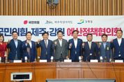 [제주교통복지신문 서유주 기자] 오영훈 제주특별자치도지사는 19일 국회에서 열린 ‘제주도-국민의힘 예산정책협의회’에서 내년도 국비 확보와 제주 지역 현안 해결을 위한 초당적 협력을 요청했다. 이번 예산정책협의회에는 국민의힘 권성동 당대표 직무대행 겸 원내대표, 성일종 정책위의장, 송언석 원내수석부대표, 김성원 국회 예결위 간사, 양금희 원내대변인과 김영진 제주도당 위원장 등이 자리를 함께 했다. 오영훈 제주도지사는 협의회에서 “국정과제인 ‘어디서나 살기 좋은 지방시대’를 열기 위해 민생정책 실현과 도민의 어려움을 해결할 수 있는 예산 확보가 중요하다”며 2023년도 국비 예산 확보와 지역 현안 해결을 위한 제도 개선의 필요성을 강조했다. 특히 “상수도와 물류체계는 민생과 직결되는 절박한 현안으로 제주가 섬이라는 지리적 특수성을 감안해야 한다”며 시급한 해결을 위한 예산 반영과 주요 핵심사업에 대한 국회의 적극적인 지원을 당부했다. 제주도는 내년도 국비 확보 목표액을 1조 8,380억 원으로 잡고, 도민의 삶과 직결되는 주요 핵심사업을 설명하며 예산 확보에 적극적인 지원을 요청했다. 이날 건의한 주요 사업은 ▲교래정수장 현대화사업 ▲노후