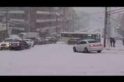 폭설이 내린 8일 오전, 제주시 동광양 물통 부근에서 월동장비를 미처 갖추지 못한 차량들이 미끌어지며 연쇄추돌하고 있다. <독자 제보 영상>