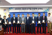 제주도는 24일 오전 도청 삼다홀에서 ‘2019년도 고용우수기업’으로 선정된 11개사를 대상으로 고용우수기업 인증패를 수여했다고 밝혔다. ‘고용우수기업 인증사업’은 지난 2년간 일자리 창출과 고용 안정에 기여한 기업을 고용우수기업으로 선정해 인센티브를 지원하는 사업이다. 지난 2010년부터 시행한 이래 작년 기준 151개 기업을 고용우수기업으로 선정해 8억6천9백만 원의 근로환경개선비를 지원했다. 올해는 총 29개 기업이 신청서를 제출, 서류심사와 현장실사등을 거쳐 최종 11곳이 선정됐다. 이번 선정된 고용우수기업은 ▲포원정보통신(주) ▲(주)대륜엔지니어링 ▲(주)월드씨앤에스 ▲(주)블루렌트카 ▲(주)조끄뜨레 ▲농업회사법인 (주)제주클린산업 ▲(주)나눔에너지 ▲피앤씨(주) ▲㈜박스트리 ▲(주)헬리오스 ▲농업회사법인(주)제우스 등으로 인증기간은 2019년 6월 1일부터 2021년 5월 31일까지 2년간이다. 고용우수기업으로 선정된 기업에는 인증서와 인증패, 인증현판 수여 및 신규인증 기업에는 기업당 2천만 원 이내, 재인증 기업에는 5백만 원 이내의 근로환경개선비를 지원할 계획이다. 이와 함께, ▲사업용 부동산 재산세 50% 감면 ▲창업 및 경쟁력