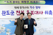 [제주교통복지신문 최효열 기자] 가수 영탁이 전복 홍보대사가 됐다. 영탁은 지난 18일 완도군청에서 열린 완도 전복 홍보대사 위촉식에 참석했다. 그는 앞으로 완도 전복에 대해 알릴 예정이다. 영탁이 지난 10일 발표한 신곡 ‘전복 먹으러 갈래’는 독특한 제목만큼 재미있는 가사가 인상적인 팝 트로트 장르의 곡이다. 가사 속 ‘완도 앞바다’와 ‘전복’이 자연스럽게 홍보되자, 완도군은 영탁에게 완도 전복 홍보대사를 제안했고 영탁이 이를 흔쾌히 수락했다. 영탁은 “해산물을 좋아해서 해산물을 제목에 넣으려고 생각하다가 전복이 맛있어서 최종적으로 전복을 선택했다”며 “이번 노래를 통해 전복이 많이 소비돼서 어업인들에게 도움이 됐으면 한다”고 소감을 전했다. 한편, 영탁은 매주 수요일 오후 9시 30분 방송되는 채널A ‘요즘 남자 라이프-신랑수업’에 출연한다. 제주교통복지신문, TW News