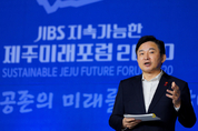 원희룡 제주도지사는 22일 “제주의 핵심가치인 청정 자연을 지키고 코로나19와 경제 위기를 극복하면서 이후 미래를 준비해야 하는 중요한 시점”이라며 “그린뉴딜, 디지털뉴딜, 사회안전망강화 등 3개 분야를 중심으로 한국형 뉴딜을 선도하겠다”고 강조했다. 원희룡 지사는 이날 오후 2시 제주한라대학교 한라컨벤션홀에서 열린 ‘JIBS 제주미래포럼 2020’에서 ‘청정과 공존으로 여는 더 큰 제주’라는 주제로 기조연설을 발표했다. 원희룡 지사는 “제주형 뉴딜은 깨끗하고, 안전하고, 똑똑한 생활의 변화”라며 “2025년까지 제주형 뉴딜에 6조 1천억 원을 투입해 미래 먹거리를 만들고 성장 동력을 확보해 일자리 4만 4천개를 확보한다는 야심찬 목표를 가지고 있다”고 말했다. 원 지사는 그린뉴딜과 관련해 “쓰고 남은 신재생 전력을 직거래할 수 있는 전력거래 자유화를 추진하고 있으며, 신재생에너지로 생산한 잉여전력을 활용해 그린수소를 생산해 수소차, 연료전지로 활용하고 수출로 이어질 수 있도록 선도해 나가겠다”고 밝혔다. 디지털 뉴딜에 대해서는 “드론을 활용해 월동채소 농지의 실제 재배면적에 대한 조사와 심야시간 귀가길 안전 에스코트 서비스, 119세터와 구급대상자를 실시간