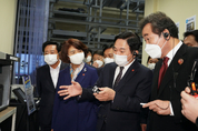 원희룡 제주도지사는 18일 이낙연 더불어민주당 대표와 만난 자리에서 제주형 그린뉴딜의 성공적인 추진을 위한 협력과 지원을 요청했다. 원희룡 지사는 이날 오후 2시 전기차배터리산업화센터에서 이낙연 더불어민주당 대표를 비롯한 중앙당 최고위원 및 당직자들이 참석한 가운데 전기차배터리산업화센터의 운영상황 및 2030 탄소 중립 섬을 위한 제주도의 주요 정책들을 소개했다. 이날 현장에는 원희룡 지사와 이낙연 더불어민주당 당대표를 비롯해 좌남수 제주도의회 의장, 김종민·염태영·신동근·박홍배·박성민 최고위원, 송재호 제주도당위원장, 정태호 전략기획위원장, 한정애 정책위의장 등이 참석했다. 원희룡 지사는 “제주는 지난 10년 간 탄소 중립 섬을 목표로 모든 전력의 100% 신재생에너지 생산, 모든 자동차의 전기·수소차 전환을 목표로 꾸준히 노력해 저탄소·디지털 경제의 선도자로써의 역할을 하고 있다”면서 “이와 연관된 많은 실험들이 진행되고 있는데 그 중 하나가 전기차배터리산업화센터”라고 말했다. 원 지사는 “앞으로 전기차 사용이 많아지고 배터리산업이 발전함에 따라 이와 관련된 인증, 검사, 활용, 응용제품 생산 등 연관 산업이 하나하나 열릴 것”이라며 “이와 관련된 초기단