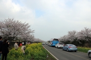 제주왕벚꽃축제와 제주유채꽃축제 폐막이 하루 앞으로 다가온 주말, 화창한 날씨에 벚꽃마저 만개하자 각 행사장으로 도민과 관광객들이 몰려들어 인산인해를 이루고 있다. ▲ 벚꽃축제가 진행중인 제주대학교 정문 앞 진입로 ▲ 어느새 만개한 왕벚꽃이 벚꽃터널을 연출하고 있다 ▲ 몰려든 인파로 북적이는…