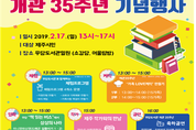 우당도서관이 개관 35주년을 맞이하여 개관기념 행사 및 특별 프로그램을 개최한다. 도서관 개관 35주년 기념일인 오는 2월 17일 13시부터는 우당도서관과 일원에서 이용자, 학생 등 1,000여명의 참여한 가운데 기념행사, 전시, 체험 프로그램 등 다양한 행사를 진행된다. 도서관 소강당에서 이용자 등 200여명을 대상으로 오퍼커션 앙상블에서 관객들의 눈높이에 맞춘 편안한 동요와 클랙식까지 ‘음악의 흐르는 도서관’공연과 제주작가 양순진 아동문학가의‘가족이 함께 만드는 동화’란 주제로 멋진 강연회가 펼쳐진다. 이밖에도 부대행사로‘나만의 걱정 인형 만들기, 코르크 다육 화분 만들기, 가족사랑 목걸이 만들기, 보드게임’등 4개의 체험프로그램과 ‘2018 도서관에 무슨 일이’란 테마로 도서관 로비에서 추억이 담긴 사진전이 개최된다, 참고로 제주시 우당도서관은 1984년 2월 17일 개관하여 보유 장서수 261,409권, 년 이용자수 354,065명, 도서대출, 197,252권, 독서․문화 프로그램 40개 강좌 13,279명 등 제주시민의 독서․문화의 전당으로 자리매김 하고 있다. 도서관 개관 ‘가족 LOVE 케익’만들기 등 특별 프로그램 참여를 원하는 시민은 제주도공