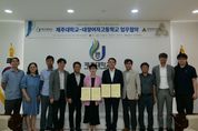 [제주교통복지신문 박희찬 기자] 제주도교육청 대정여자고등학교와 제주대학교은 6일 『자율형공립고등학교 2.0 연구학교』도전을 위해 제주대학교 접견실에서 업무협약을 체결했다. 이번 업무협약의 주안점은 대정여고생이 지역인재로 성장할 수 있도록 대학과 공동 수업 및 프로그램을 협업하고, 진로진학 프로그램을 안착을 시키는 데 있다. 대정여고는 올해 2월부터 준비한 자율형 공립고 2.0 연구학교 신청 결과, 9월부터 시작되는 연구학교에 선정되지 못하고 조건부 승인을 받아 계획서를 수정 보완하여 10월에 다시 제출해야 한다. 이번 제주대학교와의 업무협약은 제주관광대학교, 제주한라대학교와의 협약에 이어 지역대학과의 세 번째로, 자율형 공립고 2.0 연구학교 승인을 위한 또 다른 초석이 될 것이라 기대하고 있다. 대정여고와 제주대학은 △자율형 공립고 운영 관련 교육과정 설계·운영과 인프라·자원 공유 및 지원 △창의적 체험활동 프로그램 개발 노하우 공유 및 협력 △교류 프로그램을 개설 운영하여 서로의 전문성을 공유 협력하면서 교육활동 촉진 △기타 사업 목적에 부합하는 공동 협력사업을 추진할 예정이다. 이날 제주대