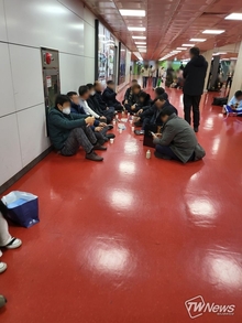 [TW포토] 제주공항, 일부 이용객 무질서한 행위에 '눈살'