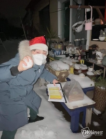 [TW포토] 제주 퓨리, 산타 복장 하고 제주도민들에게 '깜짝 선물'