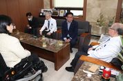 [제주교통복지신문 최지영 기자] 제주특별자치도의회 김경학 의장과 사회보장특별위원회(위원장 현지홍)는 7일 고령 장애인 대상 서비스 내용 및 지원 방안 마련을 위해 (재)제주특별자치도사회서비스원 우리복지관을 방문했다. 사회보장특별위원회는 이번 현장방문 간담회 자리를 통해 ▲고령장애인 서비스 지원 대상 연령 기준 필요성 ▲장애인 대상 고령 연령 기준에 대한 현장에서의 생각 등을 나누는 시간을 가졌다. ▲제주도 차원에서 고령장애인을 지원할 수 있는 방안에 대해 의견을 나눴으며, ▲장애인 당사자와 가족들에게 최적의 서비스를 제공할 수 있는 방안을 검토했다. 사회보장특별위원회는 출범 이후 제주도 내 장애인의 고령화에 따른 지원서비스 방안에 대해 주목해 왔다. 장애인은 조기노화와 장애로 인해 어려움을 겪음에도 불구하고 현재의 고령장애인 연령 기준에 따르면 65세가 되지 못해 필요서비스를 지원받을 수 없기 때문이다. 사회보장특별위원회 현지홍 위원장(더불어민주당·비례대표)은 “고령장애인 연령 기준 재확립의 필요성은 장애인 당사자의 서비스 이용 기회에 있다”면서 현재 '제주특별자치도 고령장애인 지원 조례'의 고령장애인 정의