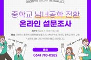 [제주교통복지신문 박희찬 기자] 제주특별자치도교육청은 7월 17일부터 8월 2일까지 ‘중학교 남녀공학 전환 설문조사’를 온라인으로 실시한다. 이번 설문조사 결과를 통해 제주시 동지역 중학교의 남녀공학 전환 시기와 순서가 결정될 전망이다. 설문은 제주시 동지역 초등학생 보호자와 초등학교 5, 6학년 학생, 제주도 내 중학교 재직 교원을 대상으로 진행된다. 주요 내용은 제주시 동지역 단성중학교의 학교별 전환 순서, 전환 대상 학교에 필요한 지원 사항 등에 대한 의견수렴 등이다. 도교육청 관계자는 “남녀공학 전환은 시대의 흐름에 따른 교육환경 조성을 위한 일이므로 교육공동체의 의견이 정책에 반영될 수 있도록 적극적으로 설문에 참여해 주기를 바란다”라고 말했다.