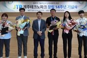 [제주교통복지신문 민진수 기자] 제주테크노파크 9월 1일 창립기념일에 앞서 지난달 30일 제주벤처마루 10층 대강당에서 전직원이 참석한 가운데 창립 14주년 기념식을 개최했다. 이날 기념식에서 정책기획단 김신영 연구원, 기업지원단 김경태 연구원, 청정바이오사업본부 김창언 연구원, 미래융합사업본부 김인경 연구원, 경영지원실 한승환 연구원이 우수직원 표창을 받았다. 문용석 원장은 기념사를 통해 성숙기에 진입한 제주TP의 미래를 위한 체질 개선을 강조했다. 문 원장은 “대내외적인 리스크가 많지만 조직적인 업무수행 체계를 개선하고, 직원 개개인의 실력을 배양해 제주 기업의 성장을 지원하고 지역 경제성장의 최전방에서 리더의 역할 수행을 위해 최선을 다해야 한다”고 밝혔다. 2010년 설립된 제주TP는 지역산업 육성과 기업의 혁신성장을 지원하는 거점기관이다. 과학기술 기반 정책기획부터 제주자원의 산업화 가치 발굴, 디지털과 바이오 분야를 중심으로 한 제품과 기술 연구개발, 각종 시설장비 지원, 성장단계별 기업지원 서비스 등 제주경제 성장의 마중물 역할을 하고 있다. 한편, 제주TP