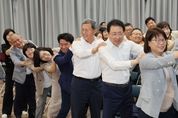 [제주교통복지신문 김현석 기자] 제주시는 소통과 공감하는 직장 분위기를 만들어 나가기 위해 9월 2일 시청 제1별관 회의실에서 공직자 150여 명이 참석한 가운데 9월 정례 직원조회를 개최했다. 코로나19가 국내 최초 발생한 지난 ′20년 1월 이후 중단된 지 4년 9개월 만에 다시 열린 직원조회는 서로 소통하고 공감하는 공직문화를 조성하고, 지역사회 발전에 기여한 시민들에게 표창의 품격을 높여 봉사의 가치와 의미를 더 크게 만들었다. 전국 주민자치 프로그램 경연대회에서 대상을 수상한 ‘구좌읍 어우렁 두드림 팀(구좌읍에 거주하는 워킁맘들로 구성)’의 모둠북 난타 문화공연의 큰 울림으로 직원조회의 다시 시작을 알렸고, 국민의례, 유공자 표창, 건강 스트레칭 강좌, 칭찬 메시지, 시장 당부말씀 순으로 진행됐다. 특히 참여자들이 진행 내용을 알기 쉽게 이해할 수 있도록 모든 프로그램은 현장에서 스크린 화면을 통해 송출됐고, 행사 현수막을 없앴다. 젊은 세대와 기성 세대 공직자의 거리감을 좁히고, 교감을 넓혀 나가기 위해 경제소상공인과 행정 8급 오강현 주무관과 조천읍 신규공무원인 행정 9급 김채은 주