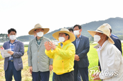 [제주교통복지신문 임의순 기자] 유두석 장성군수가 4일 김영록 도지사 등 도‧군 관계자 10여 명과 함께 지역 내 벼 수확현장을 찾았다. 이날 유두석 군수와 김 지사는 남면 평산리 소재 주세호 농가를 방문해 벼 농사의 애로사항을 청취하고 현장 농업인들을 격려했다. 2018~2019년 연속 도내 쌀 생산량 1위를 차지한 바 있는 장성군은 최근 벼 농사 전 단계를 일괄 지원하는 ‘고품질쌀안정생산통합지원시스템’ 구축을 완료했다. 또 식량산업5개년종합발전계획에 관한 연구용역 최종보고회를 개최하는 등 식량산업의 지속 발전을 위해 행정력을 집중하고 있다.