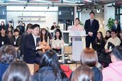 원희룡 제주도지사는 25일 오후 출범 63일 째를 맞는 제주 더 큰 내일센터를 방문해 교육생들의 지난 두 달간 활동 상황을 격려하고 건의사항을 청취하며 답변하는 소통의 시간을 가졌다. 원희룡 지사는 이 자리에서 “여러분이 자신의 꿈을 현실과 접목시켜나가는 과정은 작은 성공이든 큰 실패이든 모두 가치있는 것이다”라며 “어떤 환경에서도 주도적이고 적극적으로 해쳐나갈 수 있다면 내일센터는 100% 이상 목적을 달성한 것”이라고 강조했다. 또한 “내일센터는 제주도민 모두가 후원자로써 여러분들을 지켜보는 곳”이라며 “제주도민들을 대신해 오늘 여러분들을 격려하고 애로사항과 개선사항을 듣고 해결책을 함께 모색해 나가겠다”고 덧붙였다. 지난 9월 24일 정식으로 출범한 내일센터는 탐나는 인재 100명이 2년간 월 150만원의 생활비를 지원받으면서 취·창업을 위한 체계적인 교육훈련을 받는 원희룡 지사의 청년정책 핵심 공약사업이다. 원희룡 지사는 지난 19일 도의회 도정질문 당시 민선 7기 공약사업 중 가장 잘하고 있는 사업을 묻는 도의원의 질문에 ‘제주 더 큰 내일센터 출범’ 이라고 대답할 만큼 청년정책 사업에 많은 관심과 지원을 아끼지 않고 있다. 탐나는 인재들은 원희룡