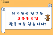 제주 지역 내 동물보호활동 및 유기견 보호활동, 동물학대행위 모니터링 등의 활동을 하고 있는 사단법인 제주동물친구들(http://www.jejuanimals.com)에서 교육활동전문가를 모집한다.
