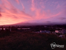 [TW포토] 제주 한라산 일출 풍경, '핑크빛 하늘'