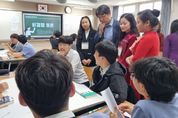 [제주교통복지신문 박희찬 기자] 제주도교육청 남주중학교는 16일 공익법인 해피트리의 베트남 독서교육 우수교사들을 제주에 초청하여 진행하는 독서교육 활동 연수에 우리 학교의 학교 급식 체험의 기회를 제공하고 전문적학습공동체의 교육과정 내 독서 후 활동에 대한 수업을 공개했다. 베트남의 독서교육 우수학교의 교장, 교사, 관계자분들과 서귀포시교육지원청 교육장님을 포함하여 20여 명이 참석했다. 학생들이 일상으로 먹는 학교 급식을 체험하고, 5교시(13:10∼13:55) ‘문제 해결 과정으로서의 읽기’라는 주제로 윤애경 교사의 국어 수업을 참관했다. 이 수업은 교육과정 내 독서 시간 활용 수업으로‘독서 질문으로 비경쟁 토론하기’활동을 진행했다. 사전에 모둠별로 책을 읽고, 읽은 내용에 대해 학생들이 질문지를 작성하고 서로 의견을 교환하면서 모둠별 대표 질문을 선정했다. 모둠별로 이동하면서 다른 모둠과 비경쟁 토론을 통해 서로의 생각을 공유하는 열린 독서 토론 수업이었다. 참석했던 베트남 선생님은 “서로 환경은 다르지만 교육과정 내 독서 수업 활동이라는 공감대를 형성했고, 베트남의 수업 활동에 적용해 보고 싶은 면들