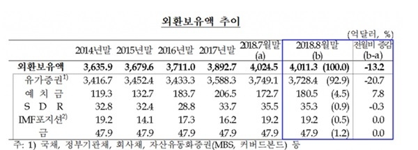 그만큼 우리 경제에서 ‘8월 외환보유액 4011억달러’ 수치가 주는 의미는 여러 해석을 낳게 하고 있다.