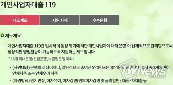 일반 대출자들에게 낯선 의미인 ‘개인사업자 대출 119’는 사실상 채무상환이 어려운 개인사업자들의 원리금 상환부담을 낮춰줘 부실채권 발생을 최소화하는 제도로 현재 15개 국내은행들이 개인사업자 대출 119 제도에 관심을 갖고 있다.