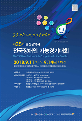 [제주교통복지신문=제주교통복지신문편집부] 장애인의 기능향상을 장려하고 장애인 고용촉진과 인식개선을 도모하는 제35회 전국장애인기능경기대회가 9월 11일부터 14일까지 4일간 울산 과학대학교, 전하체육센터, 한국폴리텍Ⅶ대학 울산캠퍼스에서 개최된다.