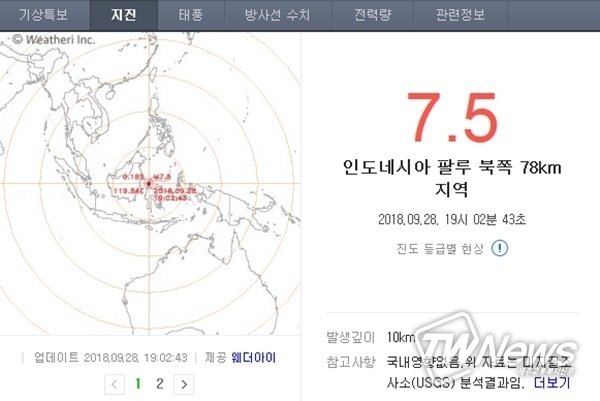 인도네시아 지진으로 아직까지 정확한 피해 소식은 외신을 통해 집계되지 않고 있지만, 규모가 7.5라는 점에서 막대한 인명 및 재산 피해가 예상된다.